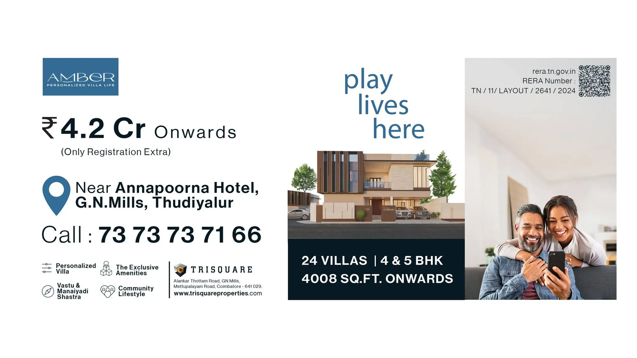 Trisquare Properties Private Limited is a Gated Community Villa in Coimbatore with world-class amenities that bring light to mind-blowing interior design and pattern. Our 3 & 4 BHK Luxurious Villas Starting at 1.48 Crores with a Gym, Indoor Party Hall, Yoga Hall, CCTV, and a Lot More Stay Engaged in the Indoor Games, Incorporated with Solar-Powered Street Lights, and Exclusive Space with Fitness Equipment Our main pursuit is to provide quality housing through uncompromising integrity and customer satisfaction.